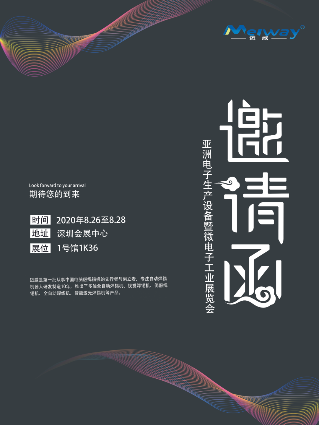 NEPCON ASIA亞洲電子生產設備暨微電子工業展覽會將于2020年8月26-28日在深圳會展中心盛大展出。屆此邁威測控技術有限公司董事長及全體員工誠摯邀請您的到來。邁威秉承專業為本,服務至上原則,精心為每一位客戶呈現非凡的的體驗與驚喜!(PS:現場有精美禮物贈送哦!)