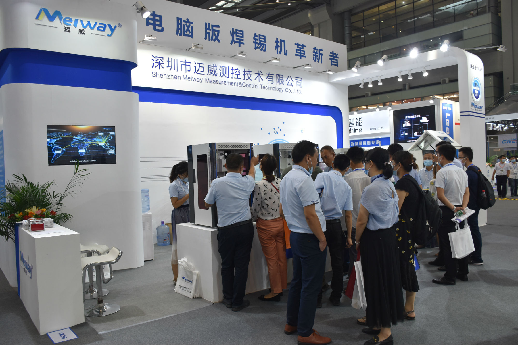 展會(huì)中,邁威展示了最新技術(shù)的自動(dòng)焊錫機(jī),包括第七代桌面式焊錫機(jī)、模組式在線焊錫機(jī)、激光焊錫機(jī)等,其中桌面式焊錫機(jī)、在線式焊錫機(jī)和激光焊錫機(jī)在展會(huì)現(xiàn)場(chǎng)吸引了大量客戶的關(guān)注。
